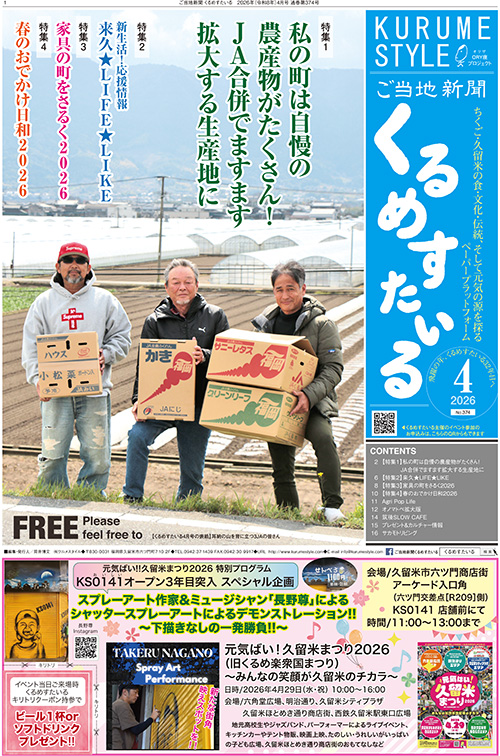 ■とき/令和8年4月10日(金)19:00〜21:00 ■ところ/おなか元氣居酒屋まんまる ■参加費/6,000円(お料理・お酒代含む) ■定員/20名(定員になり次第締切ります) ※当日キャンセルの場合は実費頂きます。 参加申込み・お問合せ/ ご当地新聞くるめすたいる TEL.0942-37-1439 【参加協力蔵元】菊美人(みやま)、天吹(三養基)、繁桝(八女)、喜多屋(八女)、旭松(八女)、 三井の寿(大刀洗)、杜の蔵(久留米三潴)、瑞穂錦(久留米大善寺)、庭のうぐいす(久留米北野) 筑後地方にも、やっと春の訪れが感じられるようになりました。旬の食材の便りとともに新酒の便りも一斉に届いて来ました。今回の特集でご紹介しました筑後地方の酒造元9社の新酒を六ツ門にある「おなか元氣居酒屋まんまる」さんのご協力により、旬を迎える地元産食材をふんだんに使った酒肴をご用意いただきます。 ※当日ご提供する新酒は変更になる場合があります。 |